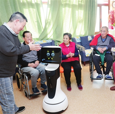 近日,记者在雍海园养老院内看到,四五个老人围着“小豹”与它互动。“小豹小豹。”“我在。”“唱首歌吧!”接到指令,“小豹”立马“唱”起旋律优美的歌曲,音质清晰,颇具感染力。
