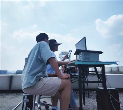 云遥宇航技术人员正在进行海反天线楼顶实收测试。