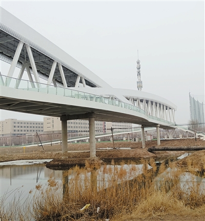记者近日在现场看到,该桥整体已完工。桥的东侧位于东寨村新建商业街内,西侧位于津文辅道路边,路对面就是天津体育学院(新校区)宿舍,附近包含天津医科大学、天津中医药大学等在内的“静海大学城”。以往,因为隔着迎丰渠,学校师生去往杨成庄乡政府附近,只有绕行北华路或鄱阳湖路,两条路线的里程都在3公里左右。“一句话特别能形容我们的状况,这么近,那么远。看着就在眼前,过去得绕来绕去。”有学生曾给《天津日报》微信公众号“16区主官周记·政民连心桥 有事您说话”栏目留言,道出了不少人的心声。