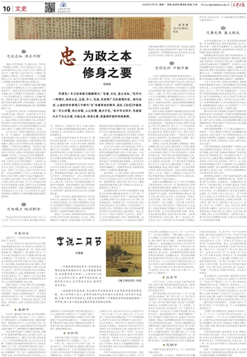 何谓忠?东汉经学家马融解释为:“忠者,中也,至公无私。”忠作为一种德行,具有公正、正直、尽心、忠诚、忠信等广泛的道德内涵。换句话说,人类的所有美德几乎都与“忠”有着紧密的联系,因此,《忠经》开篇就说:“天之所覆,地之所载,人之所履,莫大乎忠。”在中华文明中,忠被视为天下大公之道,为政之本,修身之要,是备受称誉的传统美德。