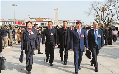 住津全国政协委员步入人民大会堂。 本报记者 王倩 摄