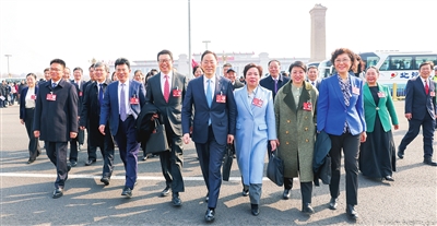 出席十四届全国人大三次会议的天津代表团代表豪情满怀步入人民大会堂。