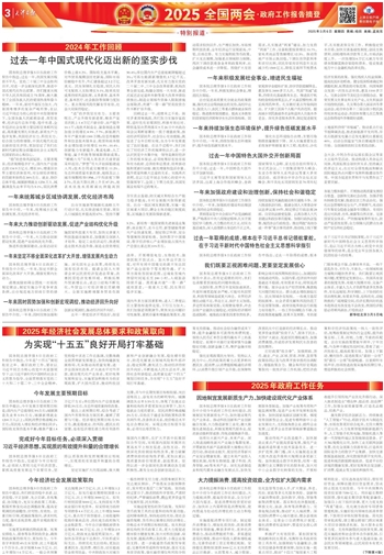 国务院总理李强5日在政府工作报告中介绍今年政府工作任务时提出,加大保障和改善民生力度,提升社会治理效能。加强普惠性、基础性、兜底性民生建设,稳步提高公共服务和社会保障水平,促进社会和谐稳定,不断增强人民群众获得感幸福感安全感。