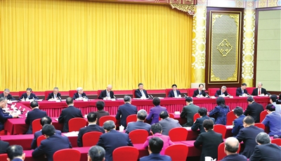 中共中央政治局常委、全国政协主席王沪宁,中共中央政治局常委、中央办公厅主任蔡奇参加看望和讨论。