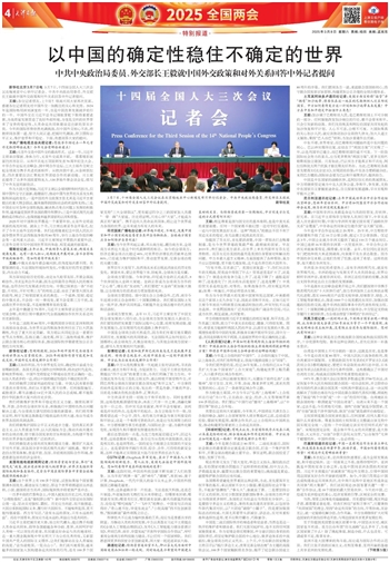 王毅:这段时间,中国的科技创新不断突破了人们的想象。从当年的“两弹一星”,到“神舟”、“嫦娥”,再到5G、量子计算、DeepSeek,一代代中国人的奋斗从未止步,中国的科技强国之路越走越宽。