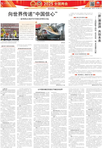 “国内生产总值增长5%左右。”5日提请十四届全国人大三次会议审议的政府工作报告,提出2025年中国经济增长预期目标。多国人士认为,中国经济增长目标稳健务实、科学合理,释放出中国经济不惧风雨、迎难而上,坚定不移走高质量发展之路的鲜明信号,为充满不确定性的世界经济带来更多信心与力量。