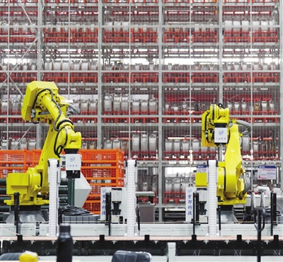 哈尔滨电机厂有限责任公司线圈分厂智能制造车间的定子线圈智能化制造设备。