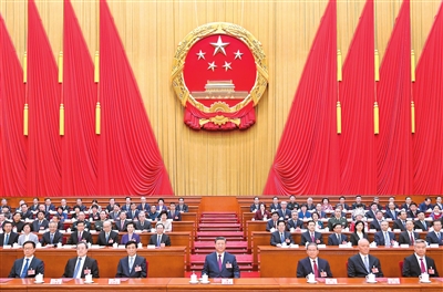3月11日下午,第十四届全国人民代表大会第三次会议在北京人民大会堂闭幕。党和国家领导人习近平、李强、王沪宁、蔡奇、丁薛祥、李希、韩正等在主席台就座。 新华社记者 李学仁 摄