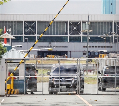 3月11日,在菲律宾大马尼拉地区的帕赛,在菲前总统杜特尔特被拘留地执勤的车辆。 新华社发