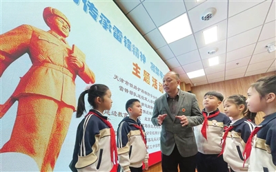 天津市第三中学附属小学邀请雷锋部队退役军人学雷锋联合会等单位走进校园,开展主题活动。 本报记者 张磊 摄