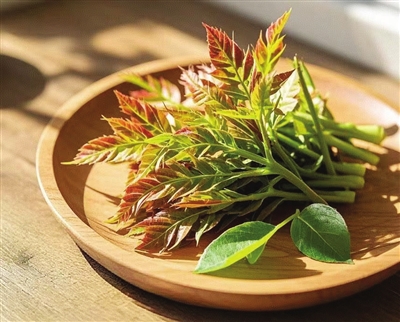 作为独特、少有的“树上的蔬菜”,农家小院里的野生头茬儿香椿最难得,口感也最佳。乡谚云“头茬香椿赛人参”,香椿作为时令名品,其食用部分是嫩芽,含有香椿素等挥发性芳香族有机物,有助于增强机体免疫功能,增加食欲。现代医学科学研究发现,香椿芽的营养价值名列蔬菜前茅,不仅脂肪含量低、蛋白质含量高,且含有较高的钾、钙、镁等人体所需的多种微量元素和氨基酸等营养成分。此外,香椿芽还富含维生素C、胡萝卜素、蛋白质等营养成分,具有清热解毒、健胃理气、润肤明目、杀虫抗菌、涩血止痢、止崩等功效,在民间素有“常食香椿不染病”的说法,香椿是春天大自然馈赠给人间的一道药食兼备的美味佳肴。