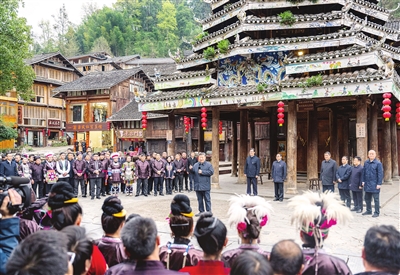 17日下午,习近平来到黔东南州黎平县肇兴侗寨考察。寨门口,身着民族盛装的村民唱起侗族大歌欢迎总书记。习近平饶有兴致地听取侗族大歌的艺术起源、曲调特点、演唱形式等方面介绍。随后,沿着村寨路道察看侗寨风貌和旅游商铺,不时驻足与店主、游客、村民互动交谈。在侗族文化展示中心,他详细了解侗族历史、风俗和服饰、建筑等特色文化保护传承情况。在侗乡特色产业基地,他观看蜡染工艺流程,对蜡染合作社坚持顾客至上、质量第一的运营理念给予肯定。习近平指出,少数民族文化是中华文化不可或缺的组成部分,既要保护有形的村落、民居、特色建筑风貌,传承无形的非物质文化遗产,又要推动其创造性转化、创新性发展,让民族特色在利用中更加鲜亮,不断焕发新的光彩。