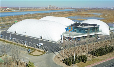 本报讯(记者 王睿 摄影 周伟)无梁无柱、无砖无瓦、恒温恒湿……这便是日前在中新天津生态城投用的气膜体育中心,集运动休闲、全民健身、竞技赛事等于一体。