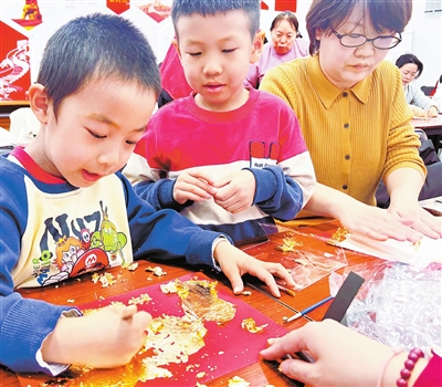 日前,耀远里社区联合南开区文联、南开区民间文艺家协会举办天津传统贴金技艺——金箔画体验活动,让市民近距离感受非遗魅力。