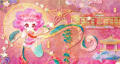 范逸涵此次创作灵感源于学校有关存储敦煌壁画的科研成果,他的专业是地理科学,他说:“我对矿物颜料很感兴趣,所以也想运用壁画中的岩彩风格体现专业特色。”考虑到印刷效果,他又引入了掐丝珐琅工艺元素,以便让画面重点突出、疏密有致。在接受采访时,他还特别介绍了明信片上的创意“小彩蛋”——使用手机相关功能识别明信片,就能看到立体、动态的画面效果,让海棠花“纸上盛放”,带来“突破次元壁”的科技感。