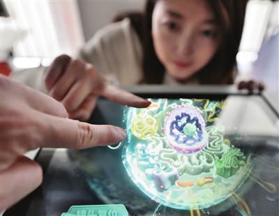 一个小小的细胞飘浮在空气中,两根手指轻触空气,小细胞开始在空中放大,手指透过细胞膜,里面的细胞核、细胞仁、线粒体纤毫毕现。这一场景,是天开园核心先导区入驻企业瀚海星云科技有限公司的全息空显技术,将虚拟化图像浮空成像,不依赖其他实体显示介质,用户直接用手指触控空中成像的内容进行交互操作。这不是科幻大片里的场景,这是我们在天开园用指尖触碰到的“未来科技之门”,是我们在电影里对科技的梦想照进现实。