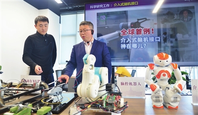 南开大学杰出教授、天津市介入式脑机与智能康复重点实验室主任段峰在介绍天津嵘元智能科技有限公司的研发成果。嵘元智能专注于介入式脑机科研成果转化与产业化应用,开展介入式脑机接口关键元器件、智能康复机器人等全产业链产品研发。嵘元智能将实现介入式脑机接口核心关键技术突破,打造形成国内一流的介入式脑机接口创新研发平台与智能康复应用先导平台。