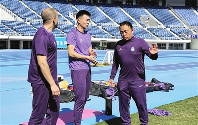 大连英博昨晚飞抵天津,今天赛后会立即返回大连。由于今天从天津飞大连的航班,最迟一班18:55起飞,而双方约定今天的热身赛要分3节进行,因此细致估算时间后,比赛定在13:30开始。津门虎上午召开准备会,11:30前往泰达足球场。