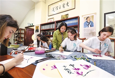 昨日,来自俄罗斯“小鹰”中俄青少年语言文化交流中心的22名学员在天津外国语大学正式开启为期两周的中国语言和文化深度研修之旅。在津期间,学员们除了参与中国书法、中国画、中国茶艺、非遗剪纸、智慧汉语等特色课程,还将实地走访天津著名文化地标,在日常生活场景中深化中俄青年友谊。
