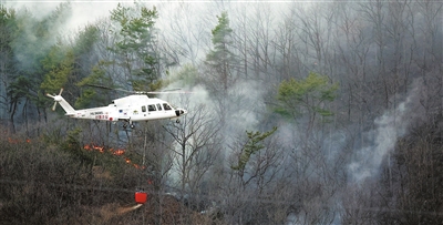 3月22日,救援直升机在韩国庆尚北道义城郡附近参与灭火。
