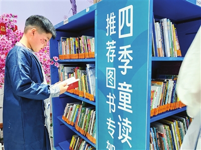 学生在“四季童读”推荐图书专架前挑选心仪的书籍。