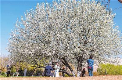 连日来,位于天津文化中心生态岛上的一棵梨树枝头开满了梨花,吸引众多市民驻足拍照。据天津文化中心区域管理办公室工作人员介绍,该株梨树在天津文化中心已经扎根10多年,由于土壤基础较好有利于果木的生长,加之精心养护,其长势越来越好。记者 吴迪 摄