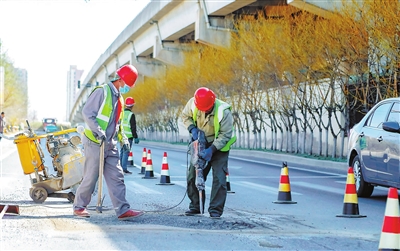连日来,西青区运管局持续开展春季道路养护工作,对重点路段集中进行路面养护、护栏除锈清洁、人行道花砖维修更换等全方位维护。记者 潘立峰 摄