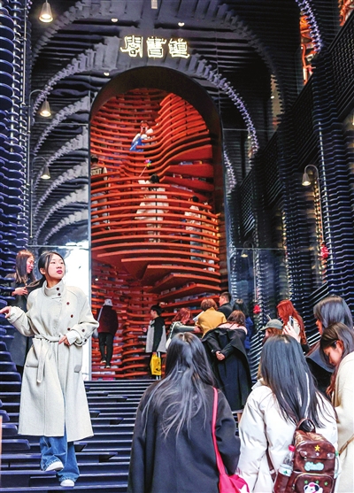 旅游区给书店带来人气,而书店也成就了旅游区的文化底蕴。店长告诉记者,作为全国性书店品牌,钟书阁在全国开的旅游型门店比较少,天津算是一个。书店开业半年多来,接待顾客20万人次。钟书阁不仅仅是一个书店,更是一个文化综合体,定期会举办作家见面会、专题讲座、亲子共读等活动。遇到节假日,钟书阁经常是“人满为患”,需要限流。为了减少顾客排队等待的时间,下一步,钟书阁准备采取预约制的形式,希望能给大众带来更好的读书、购书体验,同时,其还将推出结合天津本地特色的文创产品,让书店成为天津精神文明建设的“精神驿站”。