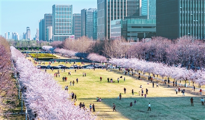 周末的滨海广场樱花大道。记者 潘立峰 摄
