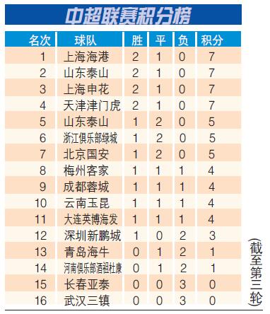 上赛季中超联赛冠军竞争格局中,上海两支球队遥遥领先“独一档”是鲜明的特点之一,无论是海港队还是申花队,都有连续多轮取胜、迅速涨分的情况。然而本赛季刚刚进行完3轮比赛,16支球队已经全部断了连胜的念想,这似乎在预示着本赛季中超联赛可能趋于乱战的态势。