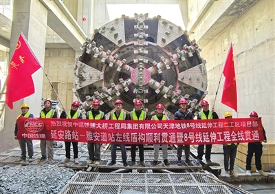 3月30日,由铁建交运集团投资建设,中国铁建大桥工程局集团承建的天津地铁8号线延伸工程延安路站至雅安道站左线实现贯通,标志着天津地铁8号线延伸工程盾构区间全线贯通,为线路顺利通车奠定了坚实基础。