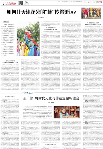 王广艳:津艺斋泥塑制作技法是一项具有一百多年传承历史的民间传统美术制作技艺,今后,津艺斋将在资料整理建档、技艺技能完善提高、影像资料保存记录等方面下功夫,完善该项目的系统性存档和宣传工作。