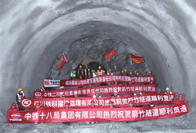 日前,由蜀道轨道交通集团投资、中铁十八局承建、中铁科研院四川铁科监理的都江堰至四姑娘山山地轨道交通项目(以下简称都四项目)箭竹隧道贯通,比原计划提前了60天。