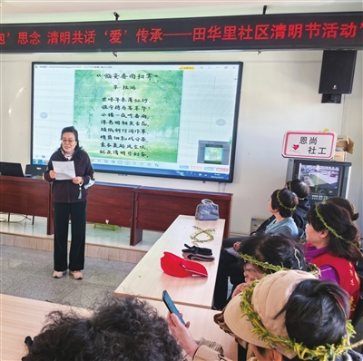 田华里社区老党员、青年志愿者同台诵读,从杜牧的《清明》、白居易的《寒食野望吟》到《朱子家训》《诫子书》,朗朗诵读声中传递着对先人的追思与对家国文化的敬重。