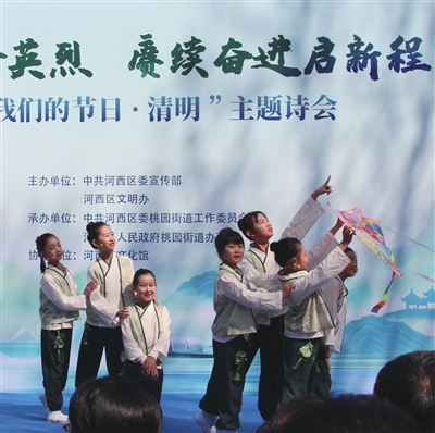 传承中华优秀传统文化,倡导文明祭扫绿色祭扫,4月1日,河西区在西苑广场怀翁亭前开展“诗承浩气祭英烈 赓续奋进启新程”——“我们的节日·清明”主题诗会。