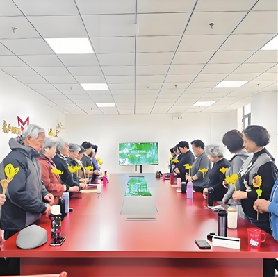 天津市殡仪服务总站“清风司仪”服务团队走进红桥区和苑街道与咸阳北路幸福社区开展“清明缅故人 瑶芳寄哀思”—2025年社区文明共祭活动。活动中,居民们怀着敬畏与思念在祈愿卡上认真写下对逝去亲人的寄语,随后手捧一束清菊,郑重地将其敬献到祈福台上。