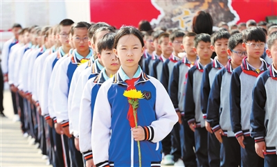 昨日,天津市青少年清明祭英烈主题团(队)日活动在天津市烈士陵园举行。