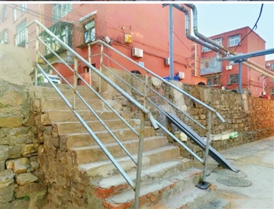 台阶扶手安装前后对比照片。 黄花脑社区供图