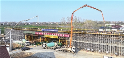 4月6日,由驻津央企中国铁建大桥局承建的宁淮铁路项目省界至天长双线特大桥首联48米连续梁浇筑完成。