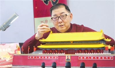 这座天安门纸样模型随后被送往上海首展,并在全国各地巡回展览,屡获殊荣。其精湛绝伦的设计工艺,令每一位观赏者都赞不绝口。“每次我都亲自搬运这座天安门纸样模型,生怕它被损坏,因为只有我自己知道创作的艰辛。”在成功打造大型天安门纸样模型后,他与某基金会合作,设计出比例缩小的天安门模型,零件数量从1300个减少到四十余个,制作难度大幅降低,成为很好的红色美育教材。