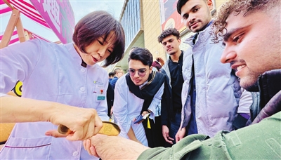 近日,2025年天津市中医文化市集首场盛会在红桥区水游城启幕。现场,来自天津现代职业技术学院鲁班工坊的巴基斯坦留学生体验了中医推拿、刮痧、耳针等疗法,对中医文化的博大精深赞叹不已。