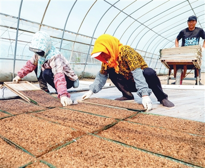 在西青区王稳庄镇的国家粳稻中心,自主研发的“天隆粳5号”等新品种水稻开始育秧。 记者 潘立峰 摄