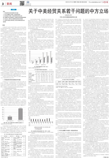 贸易方面,美方宣称,持续存在的贸易逆差对美经济和国家安全构成严重威胁。美方还以国家安全为由,通过加强出口管制、扩大对华制裁、关闭美国市场等多种单边措施,频繁加强对中国集成电路以及通信企业的限制。2025年1月,美国商务部发布《保障信息和通信技术与服务供应链安全:网联车》最终规则,称中国网联车软硬件及整车“不安全”,限制其进入美国市场;同月,美国商务部宣布对中国等国无人机系统启动信息通信技术与服务国家安全风险调查。美方还称将扩大有关信息通信技术与服务的调查范围,以涵盖所谓“对手国家”控制的先进技术。
