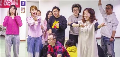 “天图夜读”即兴喜剧课堂推出以来,迅速成为年轻人追捧的热门项目。耿超介绍,参与课程的学员年龄在20至40岁之间,来自各行各业。不少年轻人因职场压力与社交焦虑,走进了即兴喜剧的课堂,在得到“心灵按摩”的同时,也发现了自己更多可能性。“00后”的李老师初入职场,他报名的初衷除了对喜剧的兴趣,也希望借鉴一些技巧运用到自己的教学工作中。在读博士小江收获很多,“大家通过即兴创作,共同营造出一个充满活力和创意的社交场景,很快就打破了人与人之间的隔阂,这是即兴喜剧独特的魅力。”课程接近尾声时,耿超对学员表示:“与传统意义上的表演相比,即兴喜剧没有门槛,它会让每一位愿意尝试的人得到肯定。我希望更多的人能够通过即兴喜剧接触表演,走近戏剧艺术。”