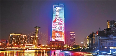 4月7日至22日,河东区利用渤海银行总部地标性建筑举办国家安全主题灯光秀。