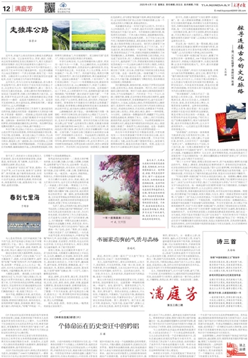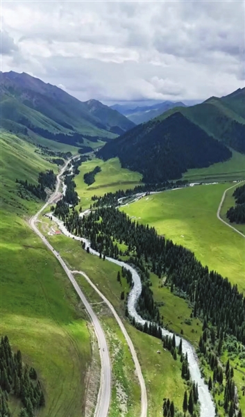 我们继续赶路,黄昏的时候,来到位于伊犁河谷的那拉提,这里有雪山、牧场、原始森林。两天后,我们又沿着独库公路向南行驶。相对于北段,独库公路南段的路更平坦些,天气也变得温和了。汽车穿过一个又一个山口,在路上缓缓行驶,接着,巴音布鲁克草原出现在视野里,遍地的牛羊在悠闲地吃草,享受着静谧的时光;途中还见到了碧蓝的大、小龙池,这是高山湖泊,四周是皑皑雪山;继续前行,见到库车大峡谷,火红色的石林与风蚀的戈壁在这里交汇,形成绵长的峡谷,行走其间,仿佛置身于外星球。独库公路上的雪山、草场、湖泊、峡谷、瀑布……种种景观,令人惊叹。公路犹如一条飘逸的丝带,将藏匿于天山深处的景色连接起来,展现给了世人。在路上,我们不仅遇见最美的风景,也见到了最好的自己。不由得更加敬佩当年的筑路官兵们,硬是在黄羊都望而却步的达坂、冰山、悬崖绝壁上修建了一条纵贯天山南北的通途。这是一条通向远方的希望之路,它承载了太多人的梦想和渴望……