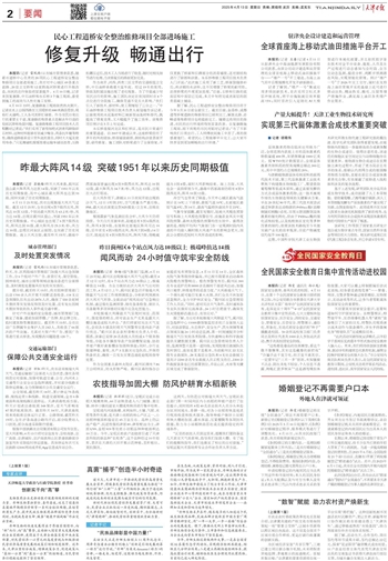 据了解,民心工程道桥安全整治维修项目将于今年5月31日前全部完工。截至目前,金汤桥、成都道等桥梁道路的维修项目已顺利完工,解放北路、赤峰道等维修项目也将提前完工。随着这些项目的推进,市民的出行环境将得到显著改善。在复康路施工现场,刚下夜班的市民刘韬对记者说:“为了不影响我们日常出行,工人师傅夜间施工辛苦了,真的很感谢他们。希望民心工程能够早日完工,让大家尽快享受到更加顺畅的出行环境。”