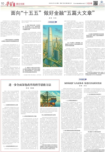 为贯彻落实党中央、国务院决策部署,加快建设金融强国,今年3月,国务院办公厅印发《关于做好金融“五篇大文章”的指导意见》,明确金融“五篇大文章”重点领域和主要着力点,并提出做好金融“五篇大文章”的政策措施。2025年,“十四五”规划迎来收官,“十五五”规划将谋篇布局,是进一步全面深化改革、奋力谱写中国式现代化天津篇章的重要一年。以金融之力培育新质生产力、赋能实体经济、守住风险底线,将金融精准注入科技创新、民生福祉等关键领域,打造金融与实体经济共生共荣的新生态,成为推动天津“十五五”高质量发展的关键抓手。