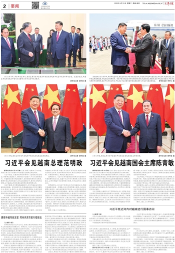 习近平指出,很高兴对越南进行国事访问,实现同苏林总书记的首轮互访。今年是越南共产党成立95周年、越南建国80周年和南方解放50周年,我代表中国共产党和中国政府向越方致以热烈祝贺。中方将一如既往支持越南走好符合本国国情的社会主义道路,胜利召开2026年越共十四大,朝着建党建国“两个一百年”奋斗目标不断迈进。