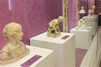 天津市立美术馆为天津美术馆前身,为了更好地展示藏品的历史文化信息,“启智开新——严智开与天津市立美术馆”展览的策展团队,根据天津市立美术馆的展厅老照片,按照当时展品的摆放顺序,对此次展览进行布展,并选用了当时展厅背景的紫色作为新展的主色调,部分复刻了天津市立美术馆的展厅面貌。